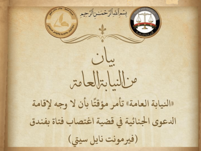 The Public Prosecution issued a temporary order today Tuesday the 11th of May, stating that there are no grounds on which to press criminal charges in the case of sexual intercourse with a female without her consent at the Fairmont Nile City hotel in 2014. This is based on the insufficiency of evidence in the case against the accused. The Public Prosecution has ordered the release of those suspects who are in pre-trial detention. The investigations of the Public Prosecution into this case have lasted for…