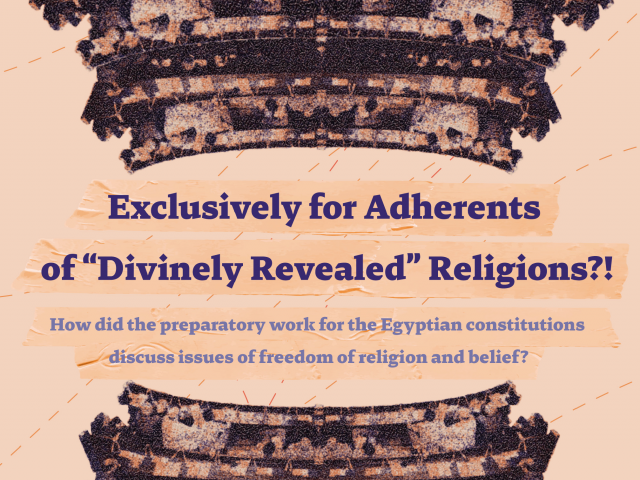 Today, EIPR published its new paper Exclusively for Adherents of “Divinely Revealed” Religions?!. The term “divinely revealed religions” is used in the constitution, laws, and some judicial rulings to restrict the religious freedoms of Egyptian citizens; specifically, those who do not adhere to Islam, Christianity, or Judaism, which are the only “divinely revealed religions” recognized in Egypt, according to the interpretations of the executive and judicial branches of government. Followers of these three reli- gions enjoy certain religious rights and freedoms which are not afforded to adher- ents of any other belief.