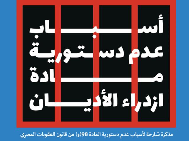 أصدرت المبادرة المصرية للحقوق الشخصية اليوم 8 يونيو مذكرة تفصيلية شارحة لأسباب عدم دستورية المادة ٩٨ (و) من قانون العقوبات، والمعروفة إعلاميًّا بمادة "ازدراء الأديان"، وهي المادة التي يقضي بمقتضاها عشرات المواطنين المصريين عقوبات مختلفة بالسجون تصل في بعض الأحيان إلى السجن عشر سنوات. ويأتي إصدار المذكرة بمناسبة تصاعد المطالب من قبل عدد من نواب البرلمان المنتخب حديثًا بتعديل المادة المذكورة لوضع حد لاستهداف المواطنين على أساس معتقداتهم وآرائهم وبما يضمن تفعيل النصوص الدستورية التي تكفل حريات المعتقد والرأي والحق في عدم التمييز والمحاكمة العادلة وكذلك بما يخلق مناخًا مواجهًا للتطرف وما يرتبط به من عنف طائفي وسياسي ومجتمعي.