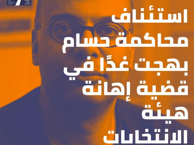 Trial of Hossam Bahgat, executive director of the Egyptian Initiative for Personal Rights (EIPR) is set to resume tomorrow, Tuesday, 2 November, before the Cairo Economic Court.