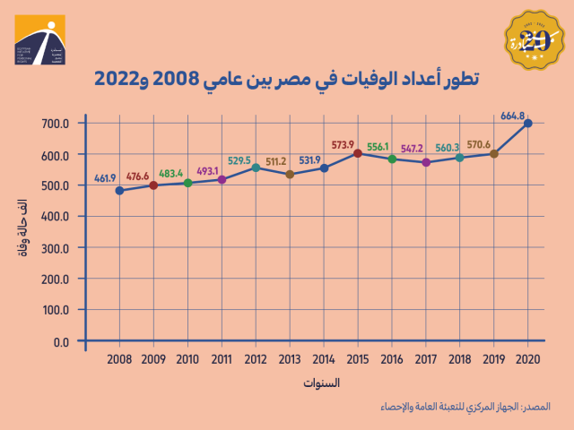 ويعزز من بيانات التقرير ما ترصده بيانات الجهاز المركزي للتعبئة العامة والإحصاء من ارتفاع ملحوظ فى حالات الوفيات في عام 2020 بالمقارنة مع معدلات السنوات السابقة، حيث ارتفعت الحالات من 570.580 ألف حالة فى عام 2019 إلى 664.763 ألف حالة فى عام 2020، بنسبة ارتفاع قدرها 16.5٪ مقارنة بعام 2019. بينما كانت نسبة الزيادة السنوية تدور بين 1 و2% في الأعوام السابقة على الوباء. ولم تصدر بعد بيانات وفيات 2021 حتى يمكن تتبع النسب في العام الثاني للوباء.