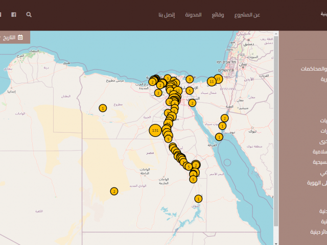 المبادرة المصرية للحقوق الشخصية تطلق خريطة الحريات الدينية في مصر ألف مادة خبرية وتقريرية موثقة منذ العام 2017 عن حرية الدين أو المعتقد ووضع الدين في المجال العام موزعة حسب نوع الحدث والمنطقة الجغرافية وزمن وقوعه